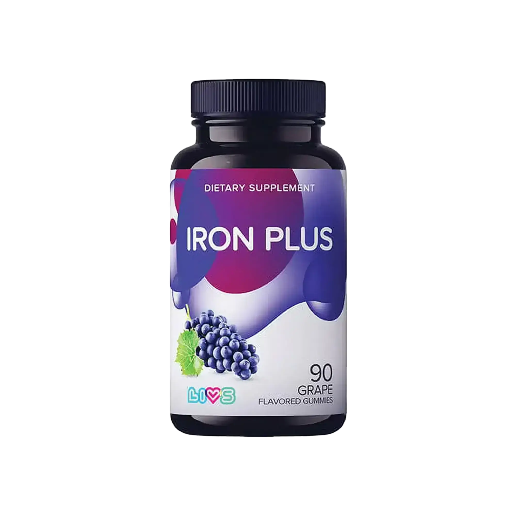 Livs offers grape-flavored gummies rich in iron, a crucial mineral for the formation of hemoglobin and the production of proteins in red blood cells. Hemoglobin transports oxygen from the lungs to the rest of the body.