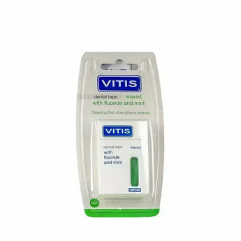 Vitis Waxed Dental Tape is a dental tape with fluoride and mint this is designed to eliminate oral biofilm (dental plaque) and leave a refreshing sensation.