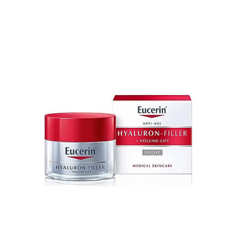 The formula of Eucerin Hyaluron-Filler Night Cream contains two different types of Hyaluronic Acid to target and treat all wrinkle types plus bio-active Glycine-saponin, to actively increase the skin’s own Hyaluronic acid production. Concentrated Dexpanthenol supports the skin’s overnight regeneration process. Skin feels soft and well cared for.