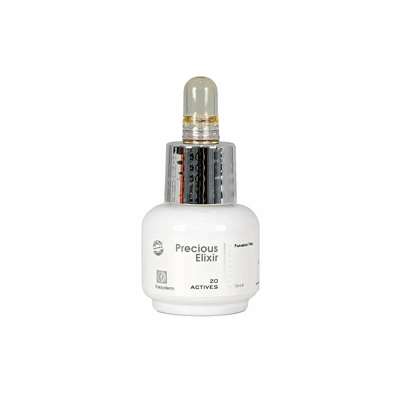 Frezyderm Age Repair Set (Retinol Caps + Precious Elixir) works synergistically to promote the production of collagen and induce the renewal of skin cells.